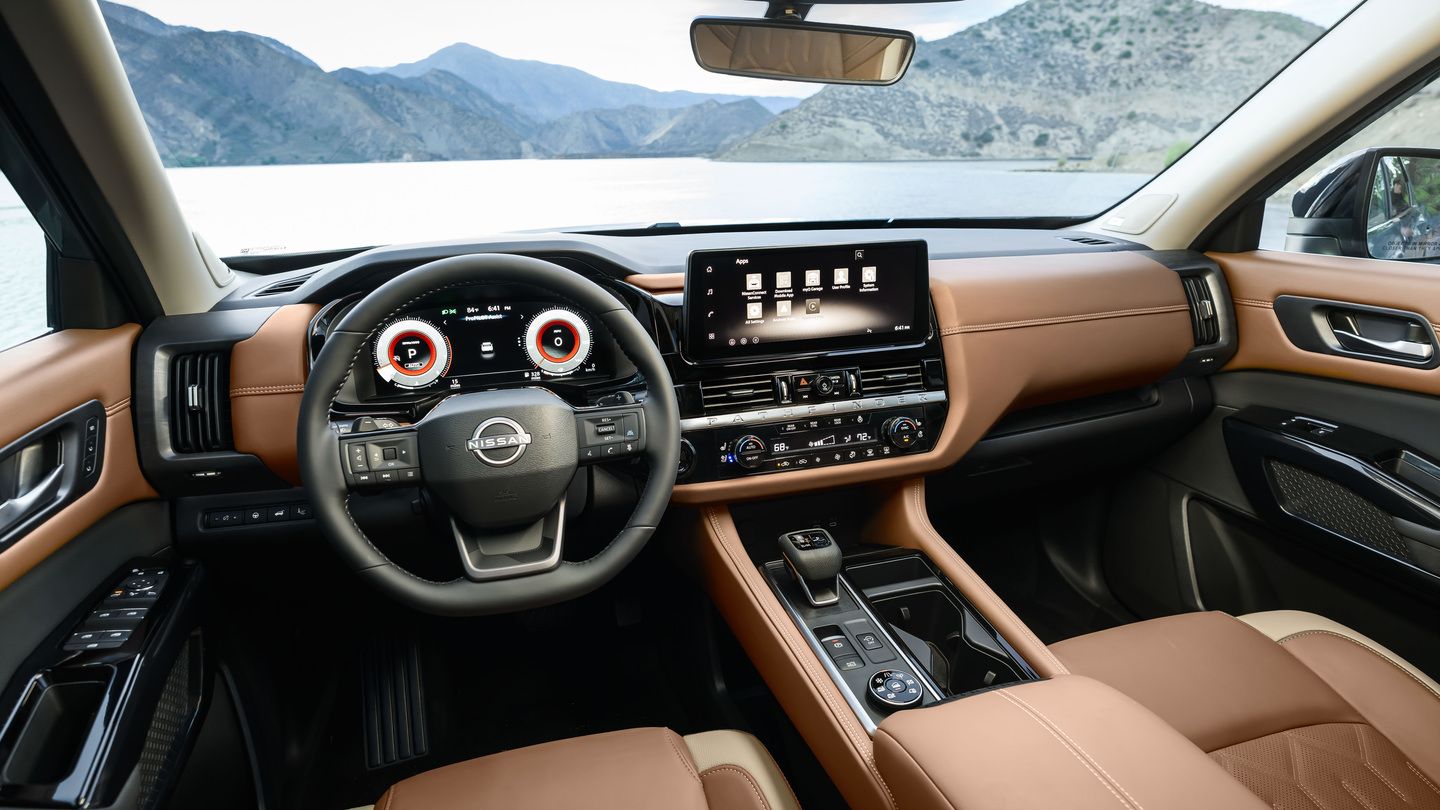 Le tableau de bord redessiné arbore également une inscription « PATHFINDER » en relief sous le système d'infodivertissement, ajoutant une touche de sophistication visuelle à l'habitacle.