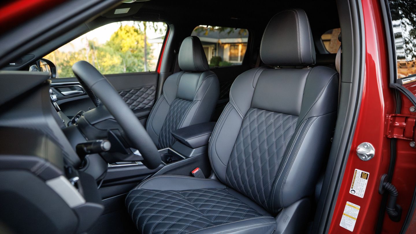 L'intérieur marie fonctionnalité et confort avec des commandes physiques pour la température, le volume audio et les modes de conduite, ainsi qu'un levier de vitesses électrique facile à utiliser. Les matériaux souples au toucher recouvrent le tableau de bord et les accoudoirs de porte. Le verre acoustique laminé des portes avant contribue à réduire le bruit ambiant. Une plaque de garniture en aluminium usiné authentique entoure le levier de vitesses.